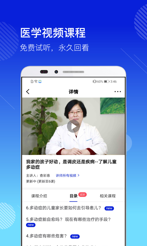医学视讯app由国内知名医学门户医学中文网倾力打造,致力于构建专业、权威的医学知识共享平台。平台内容涵盖医学前沿资讯、深度行业报道、专家访谈、疾病科普等多个维度,满足不同用户群体的需求。特别值得一提的是,平台独家收录了数百位三甲医院主任医师的专业课程视频,内容涉及内科、外科、儿科等30多个临床科室,既有面向医疗从业者的进阶课程,也有适合普通大众的健康科普内容。所有内容都经过专业医学编辑团队的严格审核,确保信息的准确性和权威性。