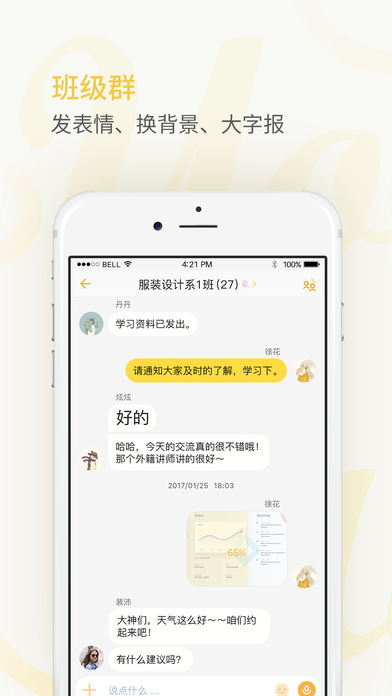 3、班级群:提供丰富的互动功能,包括发表情、换背景、大字报等;