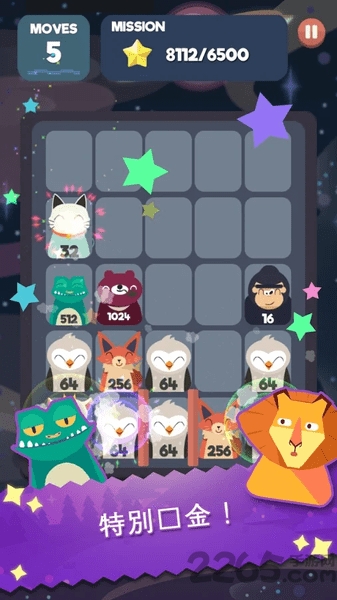 - 游戏中的每个动物角色都带有2的幂次方数字,从基础的2开始到2048甚至更高
