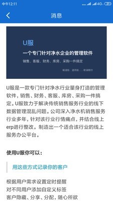 U服净水版手机版是一款专为企业设计的综合性办公管理软件,能够有效提升工作效率和管理水平。通过该软件,企业人员可以轻松管理工单系统,从调度、上门服务到完成评估,全程跟踪工单状态,确保流程井然有序。同时,用户可便捷录入订单和工单数据,实现高效管理。软件还升级了财务和库存功能,形成闭环管理,操作更简单实用。无论是客户关系维护、工单处理、财务会计还是员工管理,U服净水版都能为企业提供全方位的支持,让办公更轻松高效。