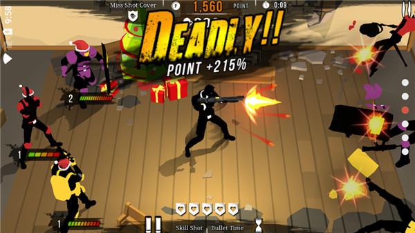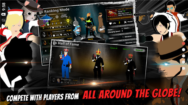 在画面中出现的敌人们攻击以前,快速触屏进行射杀!若无射击失误而连续射杀敌人,则可累积连续射杀组合,并获得奖励积分。但要注意,在射杀无辜的市民时,会减去相应的分数!游戏特别设计了动态难度系统,随着玩家技巧的提升,敌人出现的频率和攻击方式也会变得更加复杂多变,确保游戏始终保持挑战性。每个关卡都经过精心设计,让玩家在快节奏的战斗中也能感受到策略的重要性。