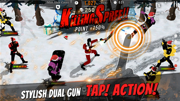 只需简单地触屏,无论是谁,都能领略到电影里看到的快速而华丽的两用枪动作!因支持双触屏操作,左右两手可同时射击,向画面左侧或右侧滑屏后,可用技巧弹球一次性攻击位于该方向上的敌人们!游戏还加入了独特的连击系统,当玩家连续命中目标时,会触发华丽的特效和音效反馈,让每次射击都充满成就感。操作手感经过精心调校,确保每个动作都流畅自然。