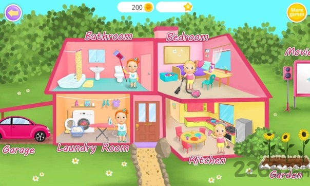 甜心宝贝大扫除3(SweetBabyGirlCleanup3)是一款专为儿童设计的家务模拟游戏。游戏中设置了多个生活场景,包括厨房、卧室、花园等,每个场景都有独特的清洁任务等待完成。玩家需要帮助可爱的小女孩清理厨房里的脏盘子,将破旧的衣服分类处理,修补破损的围墙,还要整理凌乱的小马厩。游戏采用渐进式难度设计,随着关卡推进,任务会变得更加丰富有趣。完成任务不仅能获得金币奖励,还能解锁新的道具和装饰品,让打扫过程充满成就感。游戏特别注重培养孩子的责任意识和生活自理能力。