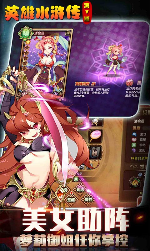 英雄水浒满V版将传统卡牌玩法与动作元素完美融合,打造出独具特色的半即时战斗系统。游戏上手简单,三分钟就能掌握基本操作,十分钟即可组建强力阵容。玩家可以根据战况自由切换手动或自动战斗模式,既保证了操作乐趣又解放了双手。游戏还特别设计了丰富的社交玩法,支持好友组队挑战副本和实时PVP对战。108位水浒英雄各具特色,通过收集培养可以解锁独特的缘分组合,大幅提升战力。每日丰富的活动任务和福利奖励,让玩家轻松享受游戏乐趣。