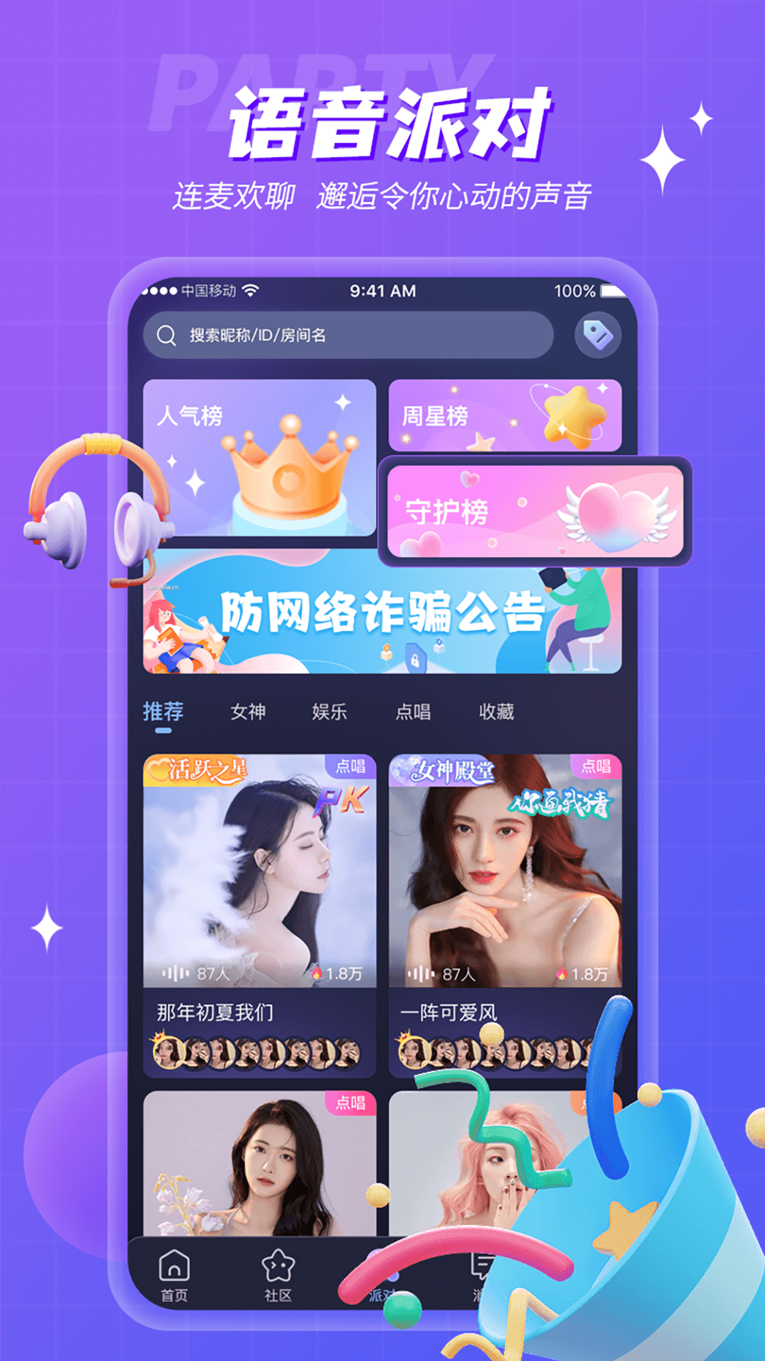1、派对及房间优化:改进了多人语音房间的交互体验,新增更多趣味互动道具,让群体社交更加生动有趣。