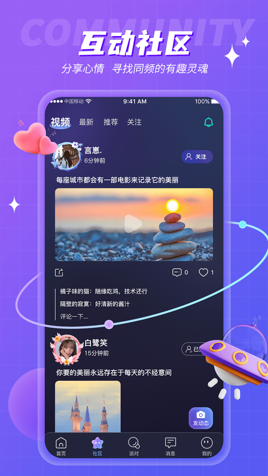 -互动社区:打造温暖友善的社交环境,鼓励用户分享真实生活。通过点赞、评论等互动方式,让每个有趣的灵魂都能被发现,建立基于共同兴趣的社交圈层。