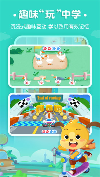 3.快乐学习:创新性地融合了笔顺动画、字母发音示范和汉字拼音练习,配合色彩鲜艳的卡通插图和流畅的动画效果,营造轻松愉悦的学习氛围,帮助小朋友准确掌握标准的拼音发音与拼读技巧。