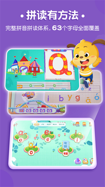 4.内容丰富:系统化地教授23个声母、24个韵母以及16个整体认读音节,覆盖500个常用汉字的拼音学习,课程内容由浅入深,循序渐进,确保学习效果扎实稳固。
