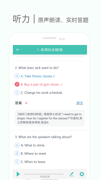 单词学习功能全面,包含跟读、点读、详细解析和配套练习,帮助用户从多个维度掌握词汇。听力训练采用原声朗读材料,配合实时答题系统,有效提升听力理解能力。教材单词提供双语朗读功能,让学习更加直观高效。特别设计的听力专项训练模块,针对高考听力题型进行强化练习。所有内容都紧扣高考要求,是高三学生复习备考的理想选择。