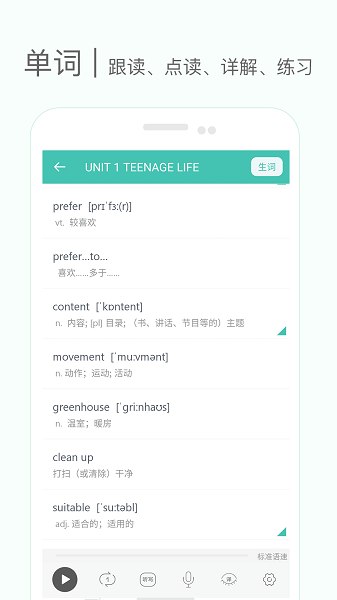 (1)教材单词。完整收录2020版高中英语必修1到选修10的全部词汇,与教材完全同步,确保学习内容与课堂进度一致。