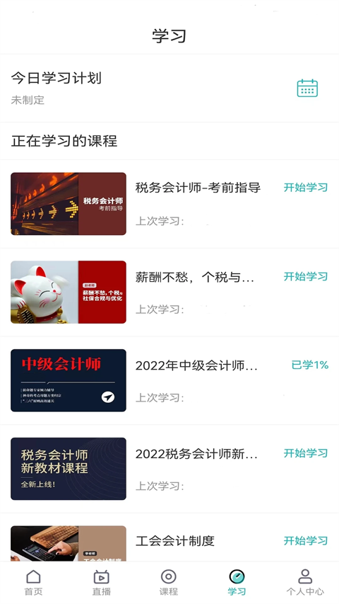 3、进入主界面后,用户可以根据自身需求在课程分类中浏览选择,平台提供财税基础、金融实务、政策解读等多个专业领域的课程,每门课程都标注了难度等级和学习时长。