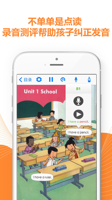 2、单句、段落复读,语速灵活控制,让孩子听得更清楚,学的更准确。支持0.5-2倍速调节,重点难点反复练习,帮助孩子攻克发音障碍;