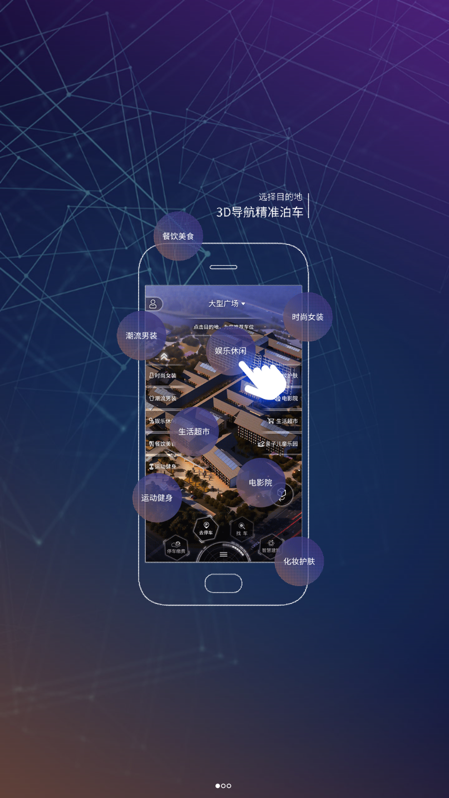 【智慧建筑群】通过BIM技术实现建筑群的立体可视化展示,用户可以查看楼层平面图、商户分布等信息。未来将接入更多商业综合体,打造智慧城市停车生态圈。