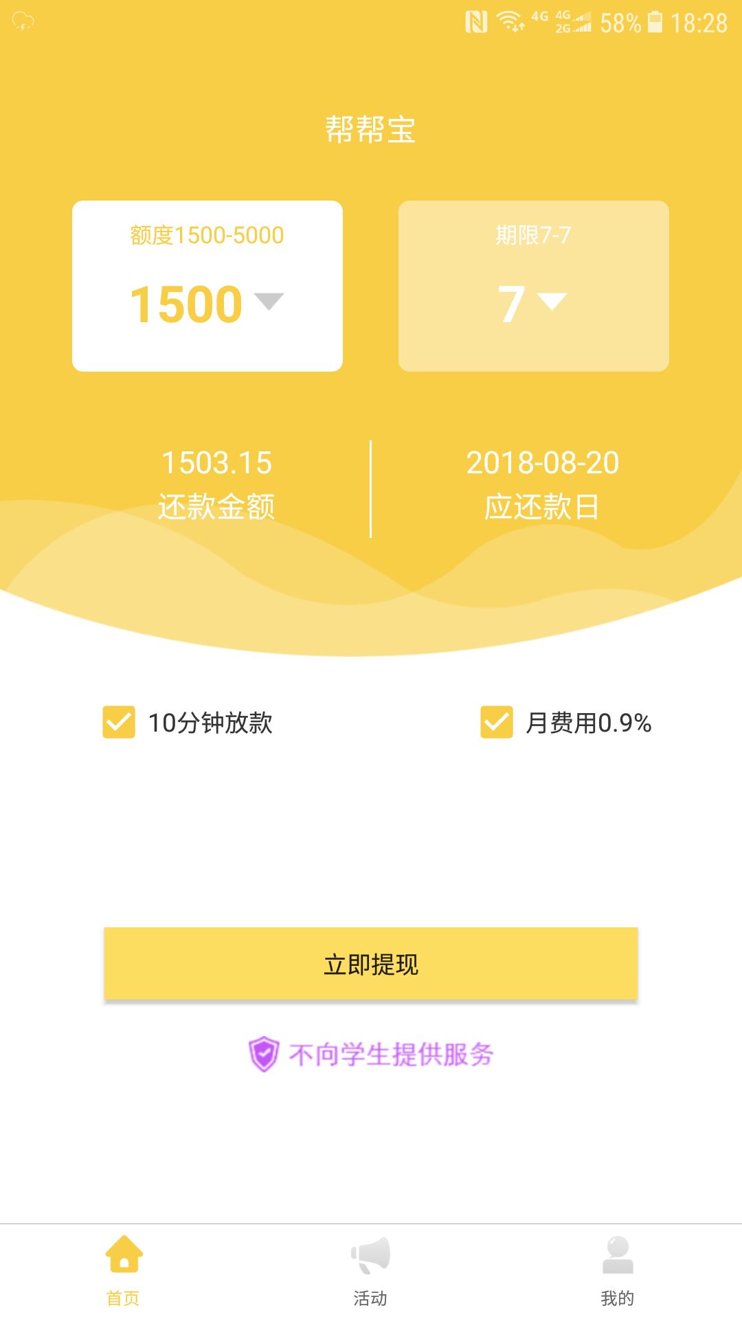 帮帮宝近期进行了全面升级,为用户提供更优质的借贷服务体验。申请流程更加简化,用户只需提供基本个人信息即可申请1500至5000元不等的借款额度,借款周期为7天。平台面向19至38岁的年轻群体开放,要求申请人芝麻信用分达到590分以上且信用记录良好。帮帮宝采用大数据风控系统,能够快速评估用户信用状况,确保审核过程既高效又安全。同时,平台会根据用户的还款记录逐步提升信用额度,为长期用户提供更优惠的借贷条件。