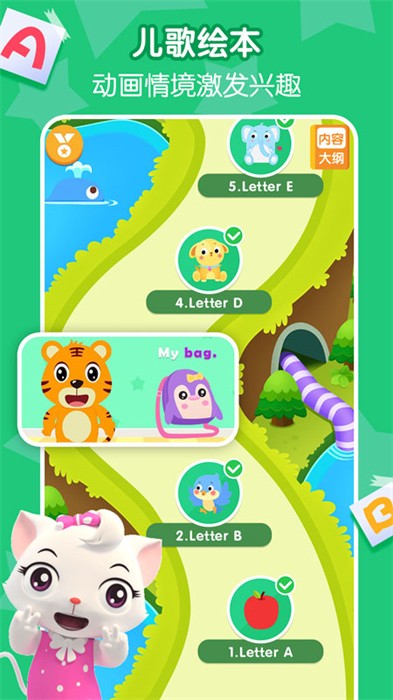3.字母描红功能,结合趣味动画和语音指导,让孩子在游戏中学习字母的正确书写顺序和笔画,提高书写兴趣。