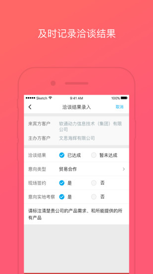洽谈结果记录:智能化的洽谈记录系统支持文字、图片、语音等多种形式,自动生成结构化数据,方便后续跟进和统计分析。