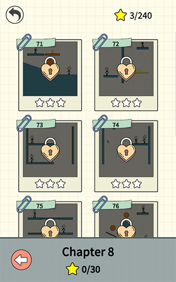 2、游戏规则简单易懂,玩家只需在屏幕上绘制线条或形状,就能帮助男孩找到通往女孩的路径。这种直观的操作方式让任何人都能快速上手,但想要完美通关仍需开动脑筋。