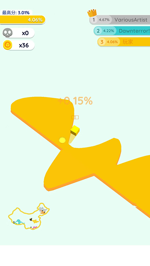 2、试着占领更多的土地,让你的地图越来越大。在此过程中,不要触摸其他纸球。平衡风险与收益是制胜之道。