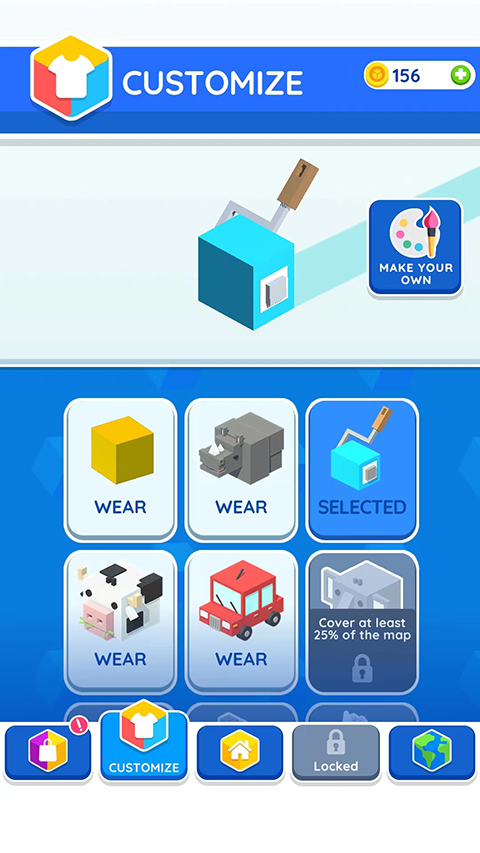 8、在【CUSTOMIZE】界面,可进行选择不同的方块皮肤。个性化装扮能让你的角色更加独特。