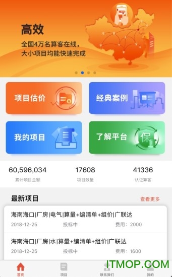 算客工场是一款专为工程项目领域打造的智能化服务平台,通过移动端App为用户提供高效便捷的项目管理解决方案。平台整合了项目报价、案例参考、专业人才对接等核心功能,依托大数据分析和经典案例库,帮助用户快速获取精准报价和优质服务。无论是项目发包方还是专业工程师,都能在这里实现高效对接,完成从需求发布到服务交付的全流程管理。其简洁直观的操作界面和强大的功能配置,显著提升了工程项目管理的效率和质量,是工程建设领域从业者的得力助手。