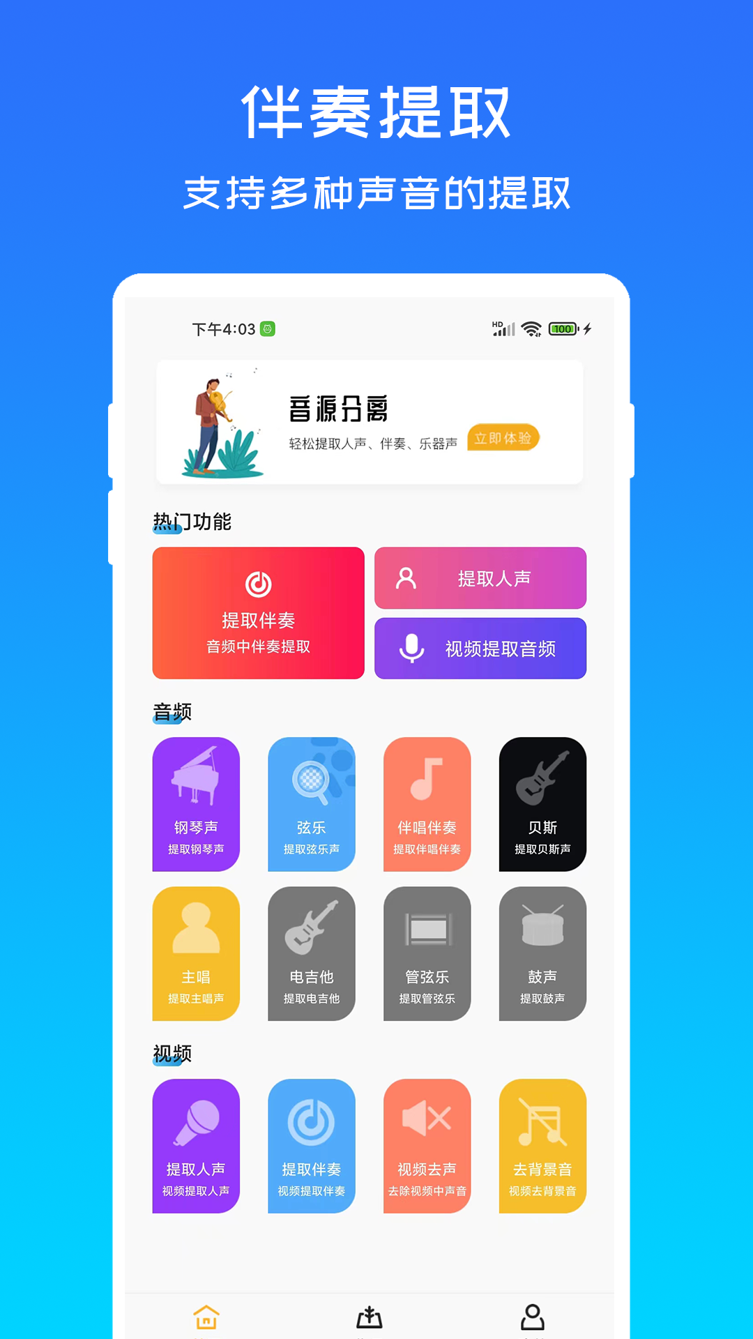 1、内置多种独特的音频提取设置,用户可以根据需求选择不同的音乐伴奏模式,享受个性化的音频处理体验。
