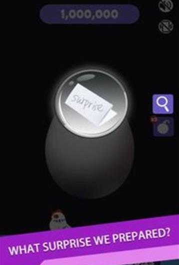 2、玩家需要做的就是使用不断的点击鸡蛋,直到点击100W下来将鸡蛋打碎,看看里面装的什么。这个长期目标给玩家提供了持续游玩的动力,每次砸蛋都充满期待。