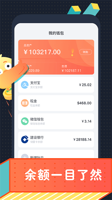 展示各账户余额和交易记录,清楚知道我还剩多少钱。叨叨记账支持多账户统一管理,无论是银行卡、支付宝、微信钱包还是现金,都能在一个界面清晰查看。系统会自动计算各账户余额,并显示近期交易明细。特别设计的资产统计功能,可以实时计算净资产总额,让用户对自己的财务状况有全面把握。账户间转账记录也会自动同步,确保账目准确无误。