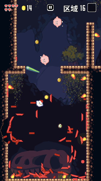 游戏采用roguelike机制,每次进入都会生成全新的关卡布局,确保玩家永远都有新鲜体验。操作方式极致简化:点击屏幕左侧让小鸡向左跳跃,右侧则向右跳跃,向上滑动可以激活当前持有的特殊道具。关卡中遍布着各种互动元素,比如致命的圆锯会突然启动,涡轮机会产生强大的气流,弹球机能把小鸡弹射到意想不到的位置。玩家需要灵活运用环境要素,比如让钟乳石坠落砸死恶魔,或者利用管道系统快速移动。每击败一个区域的恶魔后,玩家将面对造型夸张的BOSS战,从巨型机械鸡到会发射激光的恶魔王,每个BOSS都需要独特的策略来应对。