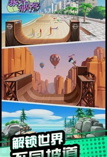 1、多功能的滑板不同玩法,带给玩家不同的游戏体验,挑战新鲜刺激玩法。从经典双翘板到长板、电动滑板,每种类型都有独特的操控特性,玩家可以收集数十种个性化滑板。