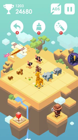 1、超酷的等距设计:采用45度斜视角呈现立体感十足的游戏场景,让平面数字合并变得生动立体;