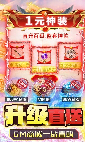 4.独特的GM系统为玩家提供了更多便利,激活后可以获取大量道具和钻石,帮助玩家更快地成长和体验游戏内容。