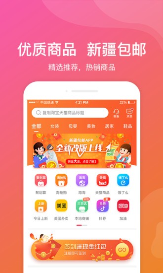 专为新疆用户设计的特色服务,汇集全网支持新疆包邮的商品,大幅缩短用户选购时间。平台与百万优质厂商深度合作,每日精选近万件无门槛大额优惠券商品,优惠力度堪比双十一。在这里,一元商品也能享受包邮,1折爆款天天上新,让新疆用户享受到前所未有的购物实惠。