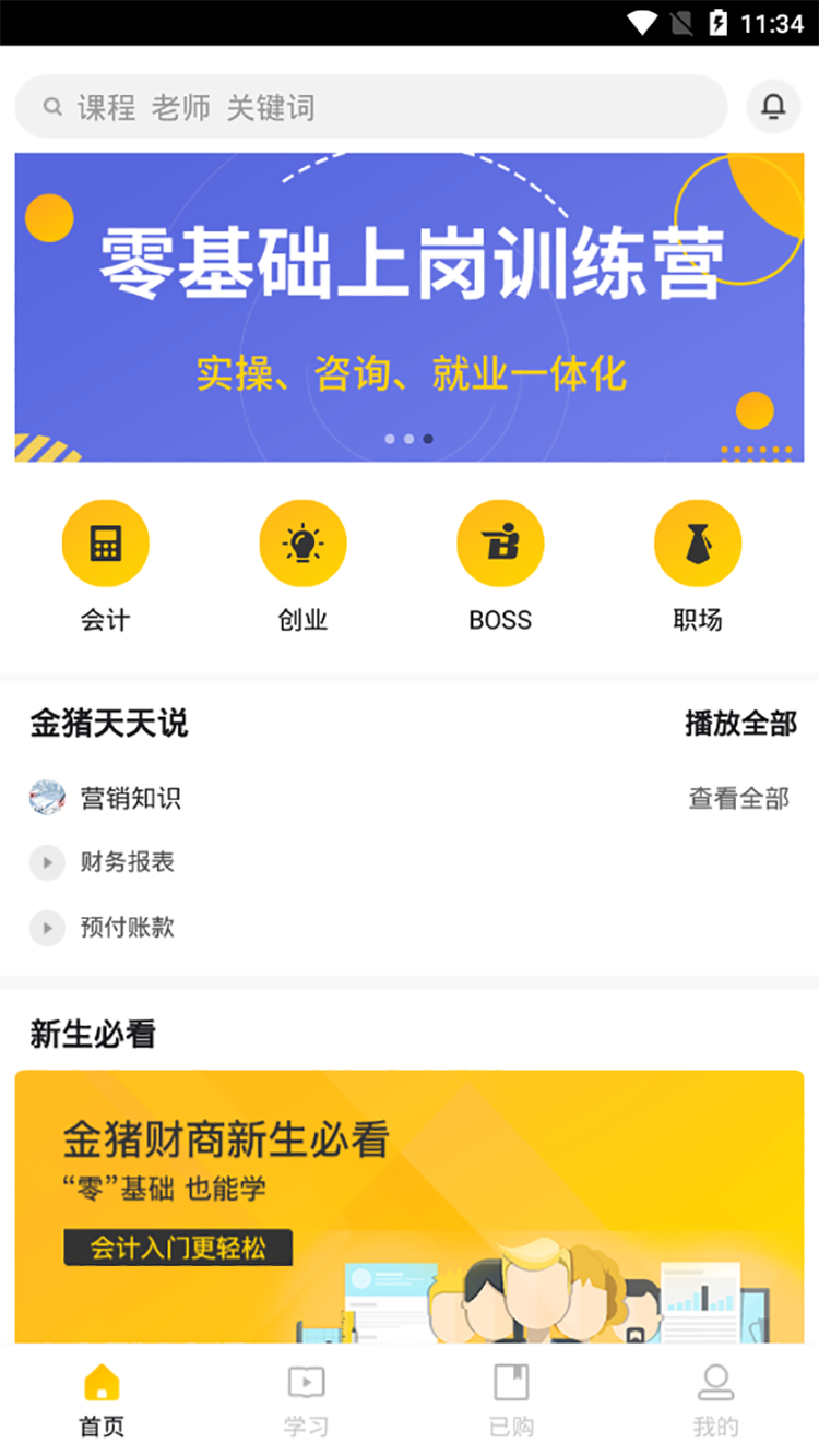 金猪财学App是一款专注于财商教育的移动应用,致力于为用户提供高效、便捷的财务知识学习体验。无论是职场人士、创业者还是企业管理者,都能在这里找到适合自己的精品课程。平台汇聚了海量财商干货,涵盖投资理财、税务筹划、创业管理等多个领域,并邀请行业大咖定期开设直播课堂,让您随时随地掌握最新财经动态。通过碎片化学习模式,每天只需20分钟,就能系统提升财商思维,实现个人财富增值。现在下载,开启您的财富成长之旅!