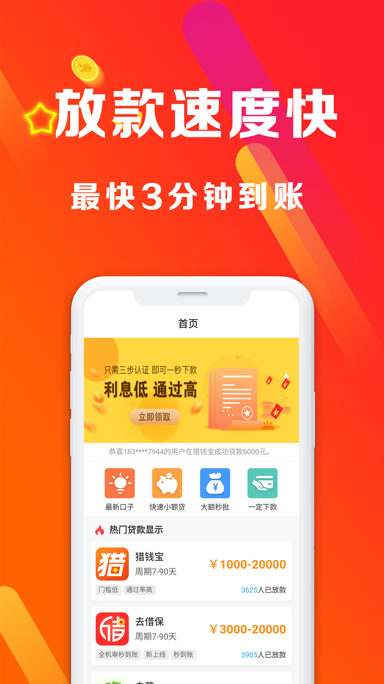 【放款效率】:随借随到,速度就是金钱。采用智能审批系统,最快5分钟完成审核,资金最快1小时到账。7×24小时不间断服务,节假日照常放款,真正实现"急用钱,马上到"的服务承诺。