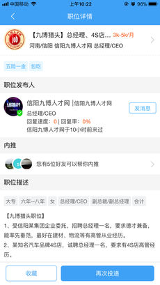 【视频职位】九博闪聘app通过视频形式展示职位信息,让招聘内容更加生动直观。企业可以通过视频详细介绍工作环境、团队氛围和岗位要求,求职者也能更全面地了解企业情况。这种创新的信息呈现方式大大提升了招聘双方的匹配效率,让招人变得更简单。