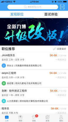 《九博闪聘》是一款专为求职者打造的高效招聘平台,让您直接与老板对话,轻松斩获心仪职位。在这里,您可以浏览海量高薪岗位,享受真实透明的招聘信息,快速匹配优质企业。无论是职场新人还是资深人士,都能通过视频简历、VR企业全景等创新功能,全方位展示自我优势,提升求职成功率。平台还提供真实面试经验分享,助您提前做好充分准备。现在就下载《九博闪聘》,开启您的职业新篇章!
