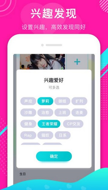 3、你可以自由设置个人兴趣爱好标签,系统会智能推荐身边兴趣相同的朋友,让交友过程更加高效便捷。
