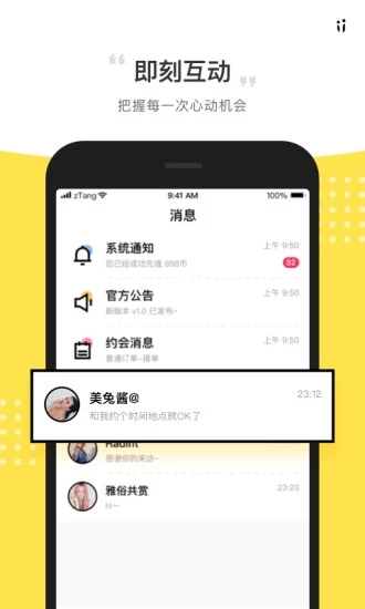 ii同城是一款专为90后、00后设计的线下社交平台,让你随时随地都能找到志趣相投的伙伴!在这个快节奏的时代,我们深知年轻人对真实社交的渴望。平台汇聚了来自各行各业的优质用户,无论是想找人一起探店打卡、看最新上映的电影,还是约游戏开黑、分享生活点滴,这里都能满足你的需求。通过智能算法匹配,让你轻松找到附近有共同话题的朋友。告别虚拟世界的孤独感,在ii同城开启一段真实而温暖的社交体验。在这里,每一次相遇都可能成为改变生活的美好契机。
