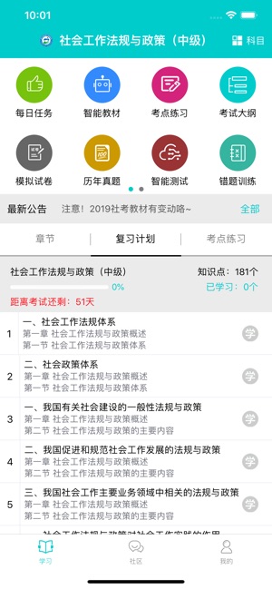 浙社考app是一款专为备考社会工作师资格考试的学员打造的智能学习平台。该软件整合了海量优质学习资源,包括章节练习、全真模拟、历年真题等核心功能模块,同时配备专业讲师视频课程和考试技巧指导。通过大数据分析技术,app能够智能评估用户学习情况,精准推送薄弱知识点,帮助考生高效掌握考试重点。无论是通勤路上还是休息间隙,用户都能利用碎片时间进行系统学习,真正实现移动化、智能化的备考体验。
