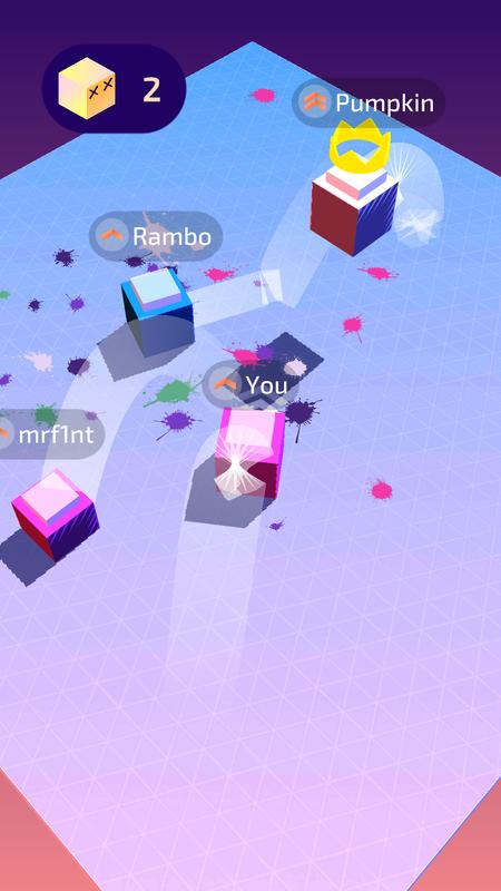 游戏采用鲜明活泼的卡通风格,使用大色块设计让角色辨识度极高。每位玩家都有专属颜色,移动时会在地面留下彩色轨迹,方便追踪对手动向。排行榜第一名的玩家会获得闪耀的王冠特效,彰显王者风范。游戏场景采用立体平台设计,配合动态光影效果,营造出充满活力的对战氛围。角色动作夸张有趣,被击败时的爆炸特效更是令人忍俊不禁。