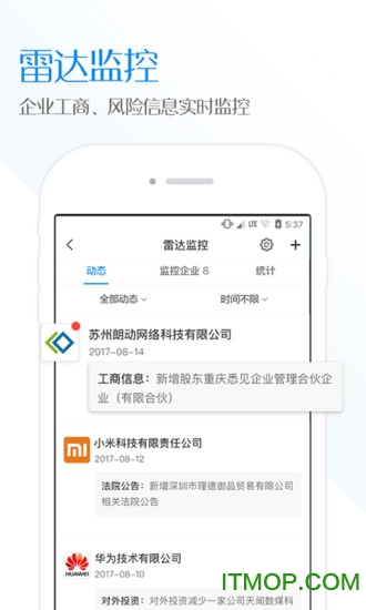 软件实时同步企业相关新闻动态、资质证书和发展历程,帮助用户掌握企业最新动向。系统会对重要变更进行特别提醒,确保用户获取的信息始终是最新最全的,让商业决策更加及时准确。