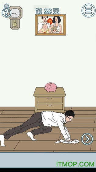 13.第二页,开箱子,拿钱,爸爸阻拦,拿到沙发的红领巾,给爸爸戴上,第一页,树后有斧子,砍断绳子,第二页,爸爸跳起躲避牛,屁兜里有钱,点击拿到,手速快点。这类需要快速反应的关卡增加了游戏的挑战性。