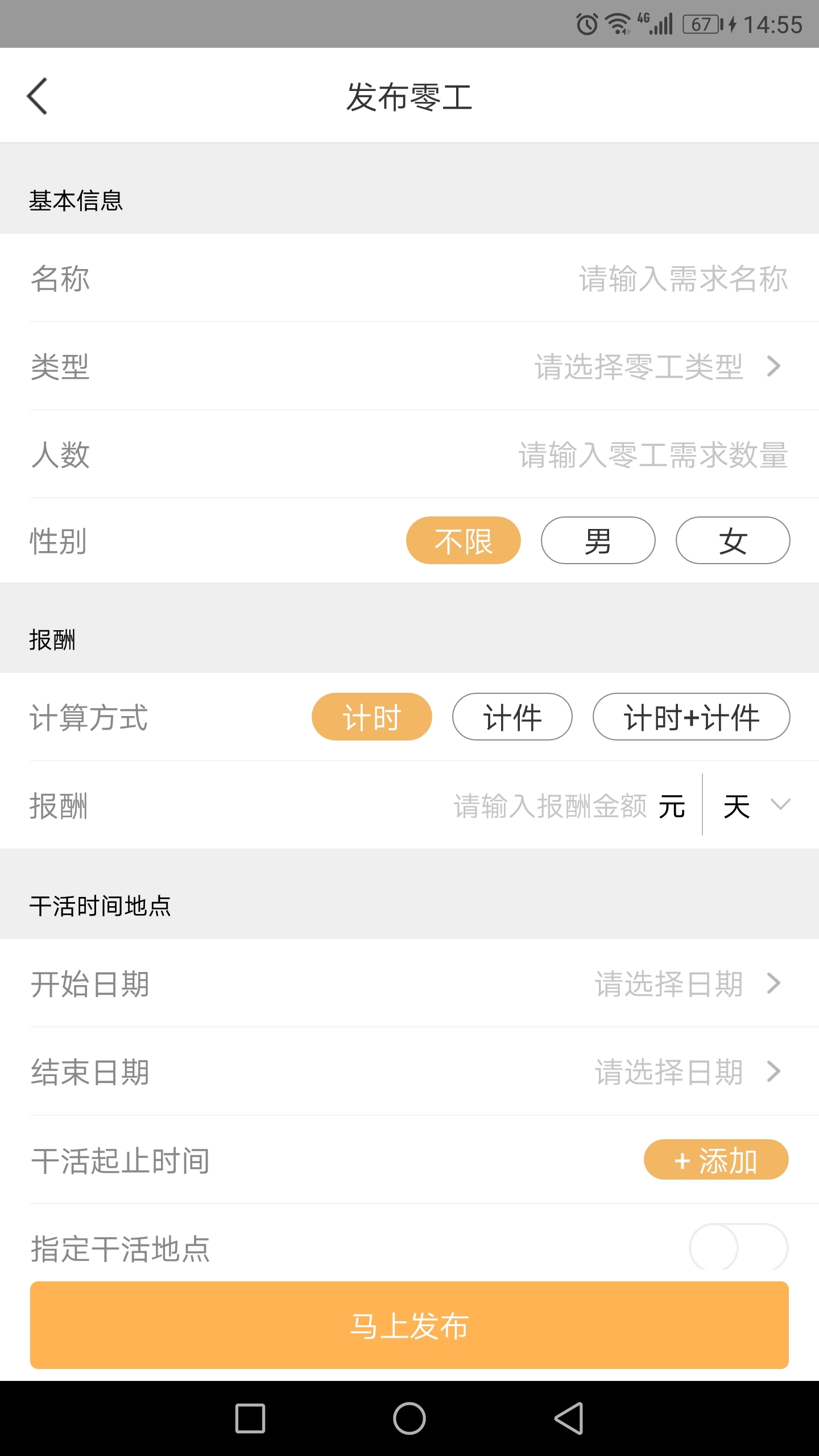 【找人干活】智能用工需求发布系统支持文字、语音、图片多种形式,通过LBS定位自动推荐3公里内的合适人选。企业可设置用工技能标签、经验要求等筛选条件,系统根据算法优先展示匹配度达90%以上的候选人。历史数据显示,85%的用工需求能在2小时内得到响应。