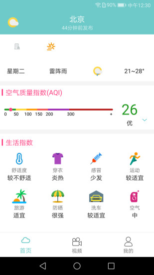 3、根据不同天气情况,为您提供贴心的续航指标,包括穿衣建议、紫外线强度、洗车指数等实用生活指南;