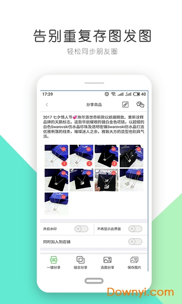 3、全渠道营销支持:可同时将商品以九宫格拼图、H5落地页、短视频带货等12种形式分发至微信/QQ/微博等八大社交平台