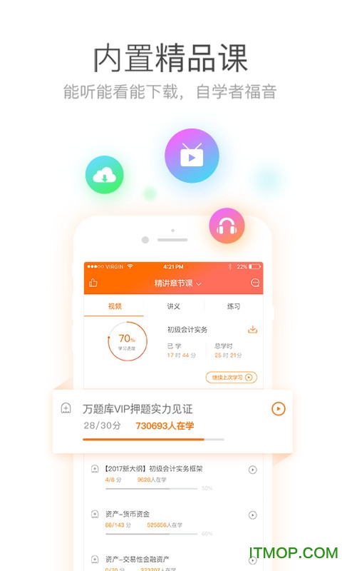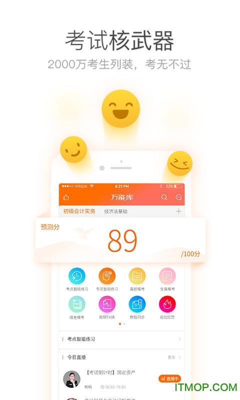 初级会计职称万能库app是一款专为会计职称考试打造的智能学习平台,集名师直播、真题解析、考点精讲于一体。该应用采用大数据分析技术,精准预测考试趋势,帮助考生高效备考。平台提供《初级会计实务》《经济法》《财务管理》等核心科目的系统化课程,通过每日更新的题库和模拟测试,让学员随时掌握最新考情。独创的"错题强化"功能可智能追踪薄弱环节,配合名师直播互动,实现个性化学习方案,是会计从业者备考路上的得力助手。