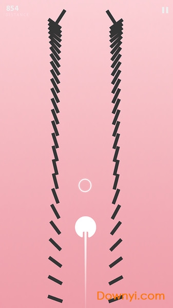 1、操控小白圈,推开前面的障碍物。玩家需要通过精准的触控操作,控制小白圈在正确时机击打障碍物,确保小球安全通过危险区域。