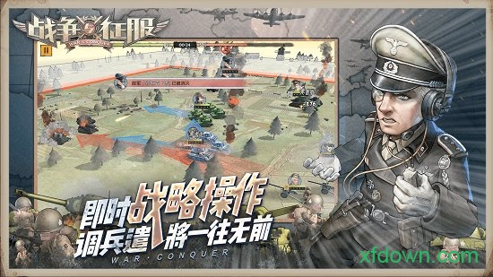 采用全3D实时演算的战斗系统,玩家可以通过手势划线指挥部队行动。无论是正面强攻还是迂回包抄,每个战术指令都能得到精准执行。战场上的树林、高地等地形要素都会影响战局,玩家需要善用这些条件创造优势。逼真的战斗特效和硬核的操作体验,将带给玩家最纯粹的战争游戏乐趣。