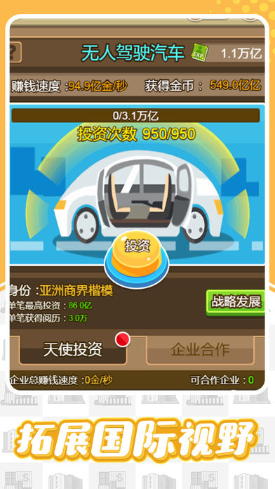 《首富大作战》是一款极具创意的模拟经营游戏,采用简约明快的画风设计,为玩家营造出轻松愉快的游戏氛围。游戏中,你将经历从底层打拼到商业巨头的完整成长过程。初始阶段需要从最基础的快递员做起,通过不断积累经验和资金,逐步拓展业务范围。随着游戏进程的推进,你可以开设连锁店铺,建立商业集团,甚至参与国际投资。游戏真实还原了商业世界的竞争与机遇,让你在虚拟世界中体验创业的酸甜苦辣。通过精心经营和策略布局,最终目标是成为全球瞩目的商业大亨。