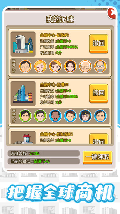 1.游戏采用高清精致的画面表现,场景细节丰富,人物造型生动,带来沉浸式的视觉体验;2.创新的点击经营玩法,通过简单操作即可完成各类商业决策,适合不同年龄段玩家;3.完善的商业模拟系统,包含供应链管理、人力资源、市场营销等真实商业元素;4.丰富的产业类型选择,涵盖零售、餐饮、房地产、金融等多个领域;5.动态的商业环境变化,市场行情会随游戏进程不断波动;6.深度的员工培养系统,可以培训提升员工能力,打造精英团队;7.多元化的社交互动玩法,可以与其他玩家进行商业合作或竞争。
